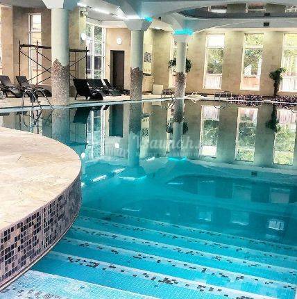 На сайте указано, что есть горки - по факту их нет. Здесь только 1 бассейн (прохладный), в котором занимаются дети из секции. Бассейн разделен на полосы. Есть еще внизу бассейн для маленьких детей. Там вода теплая, зашла с сыном в воду, но меня оттуда выгнали. Сказали - сидите на лавочке, это детский бассейн. Видели 2 таракана у лежаков. Поесть купить здесь негде - берите с собой. Единственное, что понравилось - это баня. А так - одно расстройство. Ехали в аквапарк, приехали в бассейн для спортивного плавания